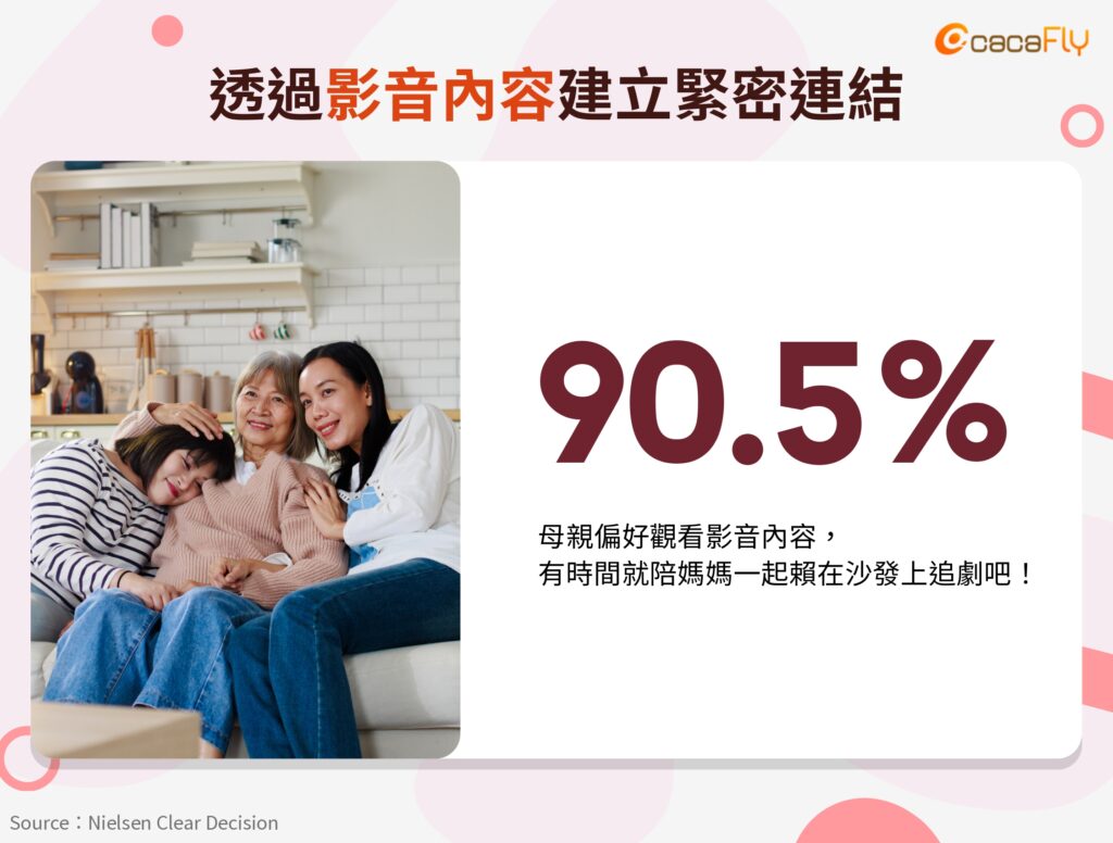 除了实体足迹,母亲族群在数码世界的参与度同样不容忽视。数据显示,超过 90% 的母亲偏好观看视频内容,显示视频不仅是娱乐媒介,更是品牌建立情感连接的重要载体。
