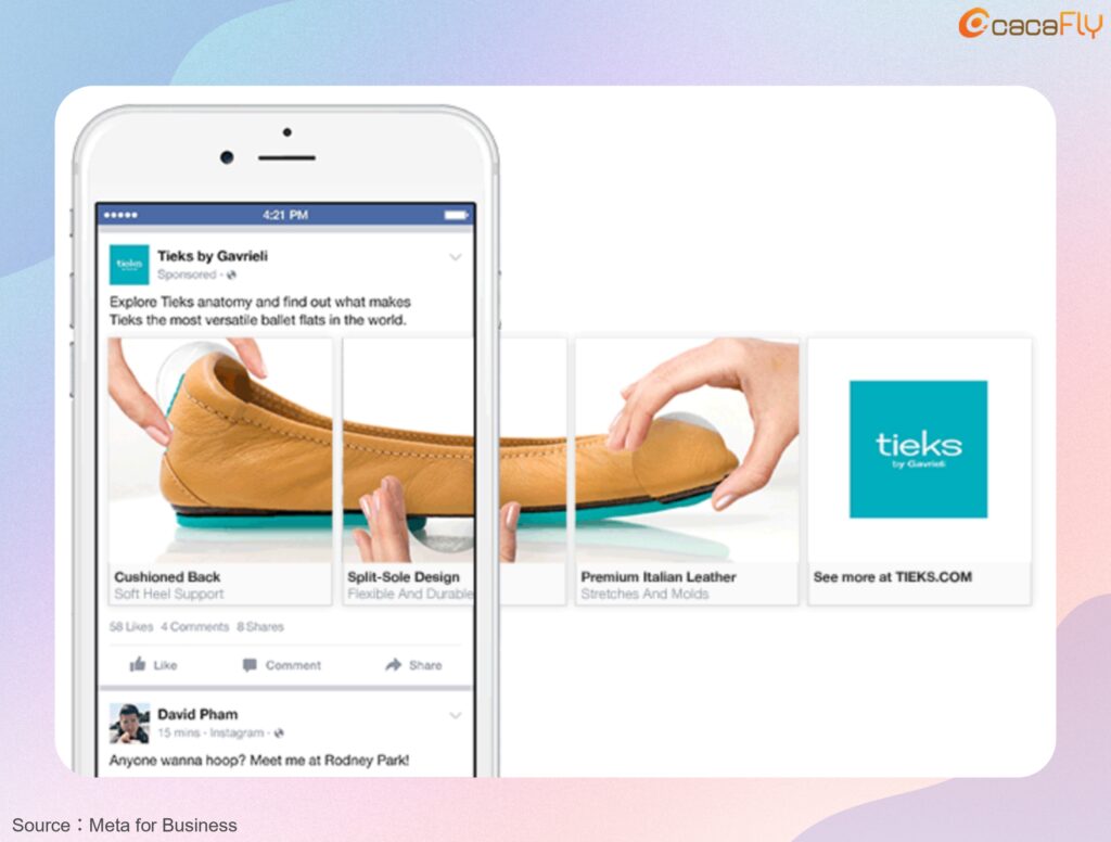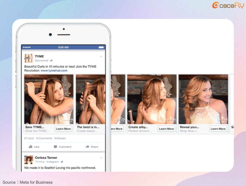 Carousel Ads simplify complex information for clearer absorption, making them ideal for B2B or high-ticket items.